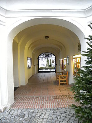 Bevor Sie das Münster betreten, bleiben Sie bitte im Friedhof stehen! Werfen Sie einen Blick nach Norden, auf das älteste Gebäude der Insel, die karolingische Torhalle. Sie ist einzigartig in ihrer Art im süddeutschen Raum. Dieses Gebäude schloss die Klosterpfalz ab. Neuesten Erkenntnissen zufolge ließ sie Bayernherzog Tassilo III. bereits 782 mit Kloster und Kirche errichten.