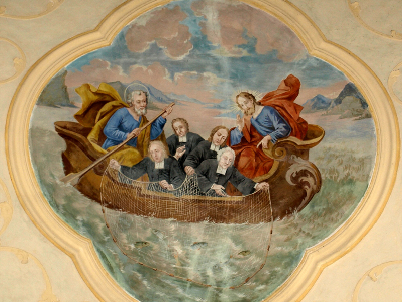 Sie war die frühere Pfarrkirche von St. Leonhard. 1435 durch den jetzigen Steinbau im gotischen Stil erbaut. Im 18. Jh. wurden auf der Raumschale Rokoko-Stuckaturen und Deckengemälde aufgebracht. Sie zeigen Allegorien aus den Leben des Hl. Petrus. Den hochbarocken Hochaltar beherrscht ein thronender Petrus, flankiert von den Ritter-Heiligen St. Florian und St. Georg. Im Altarauszug steht eine Skulptur des Hl. Paulus.