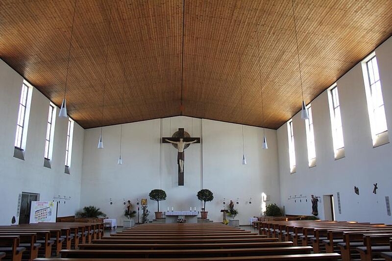 Noch vor dem Zweiten Vatikanum setzten die Gestalter, der entwerfende Architekt Anton Bernhard und der Künstler Josef Hamberger, die Ideen der Neuen Liturgie in Bau und Ausstattung um.