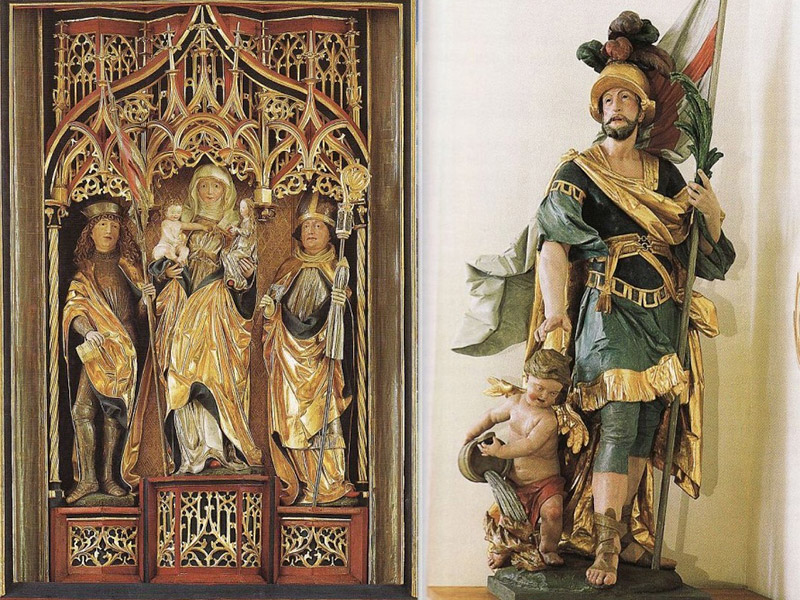 Im Wolfgangsaltar sind im Schrein Wolfgang und Christopherus, auf den Flügeln Oswald und Achatius dargestellt. Der Wolfgangsaltar kehrte nach 140 Jahren Abwesenheit und einer Reise um die Welt mit Stationen in Amerika, Belgien und Freising, 1994, zum 500-jährigen Jubiläum, wieder in seine Kirche zurück.